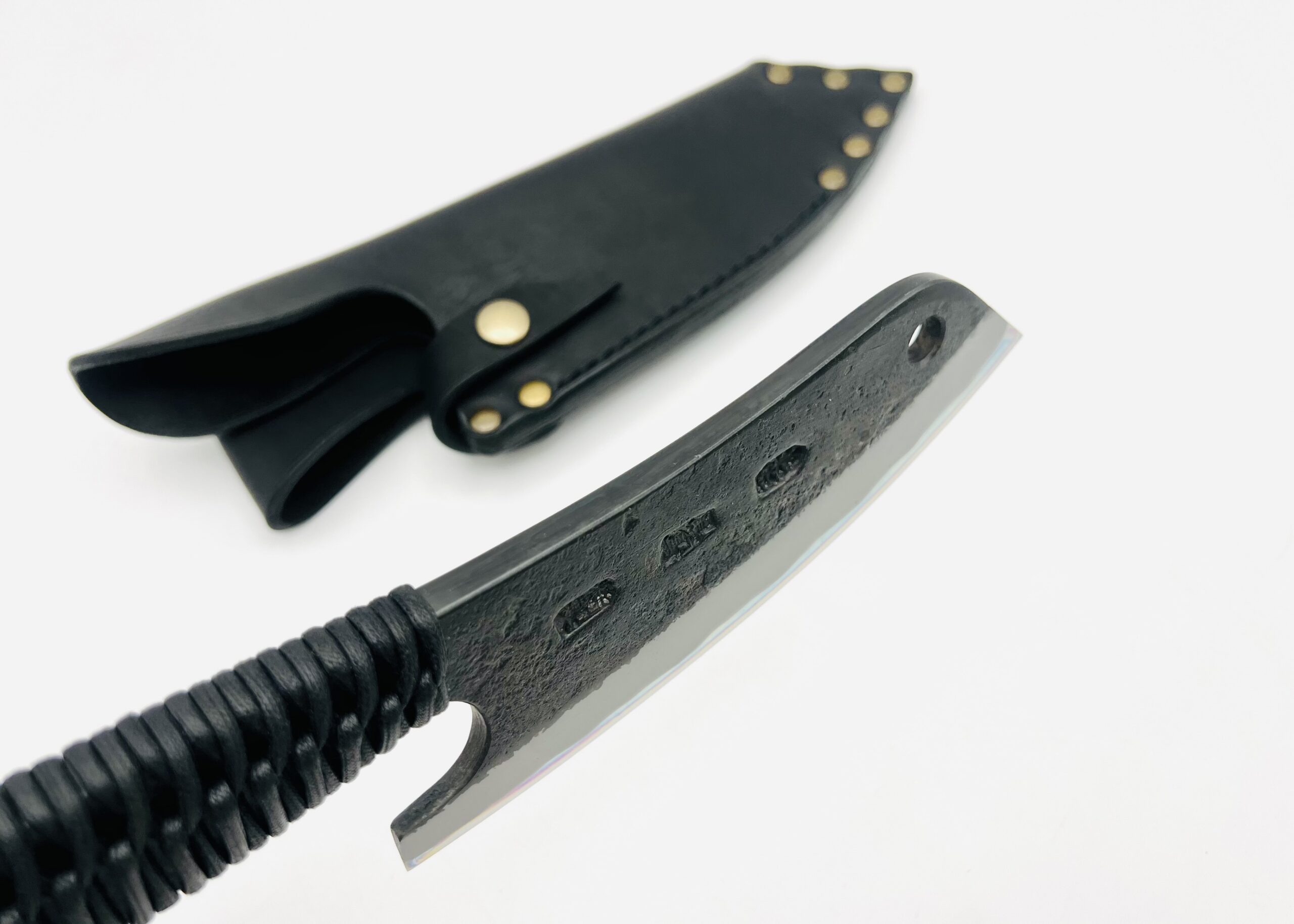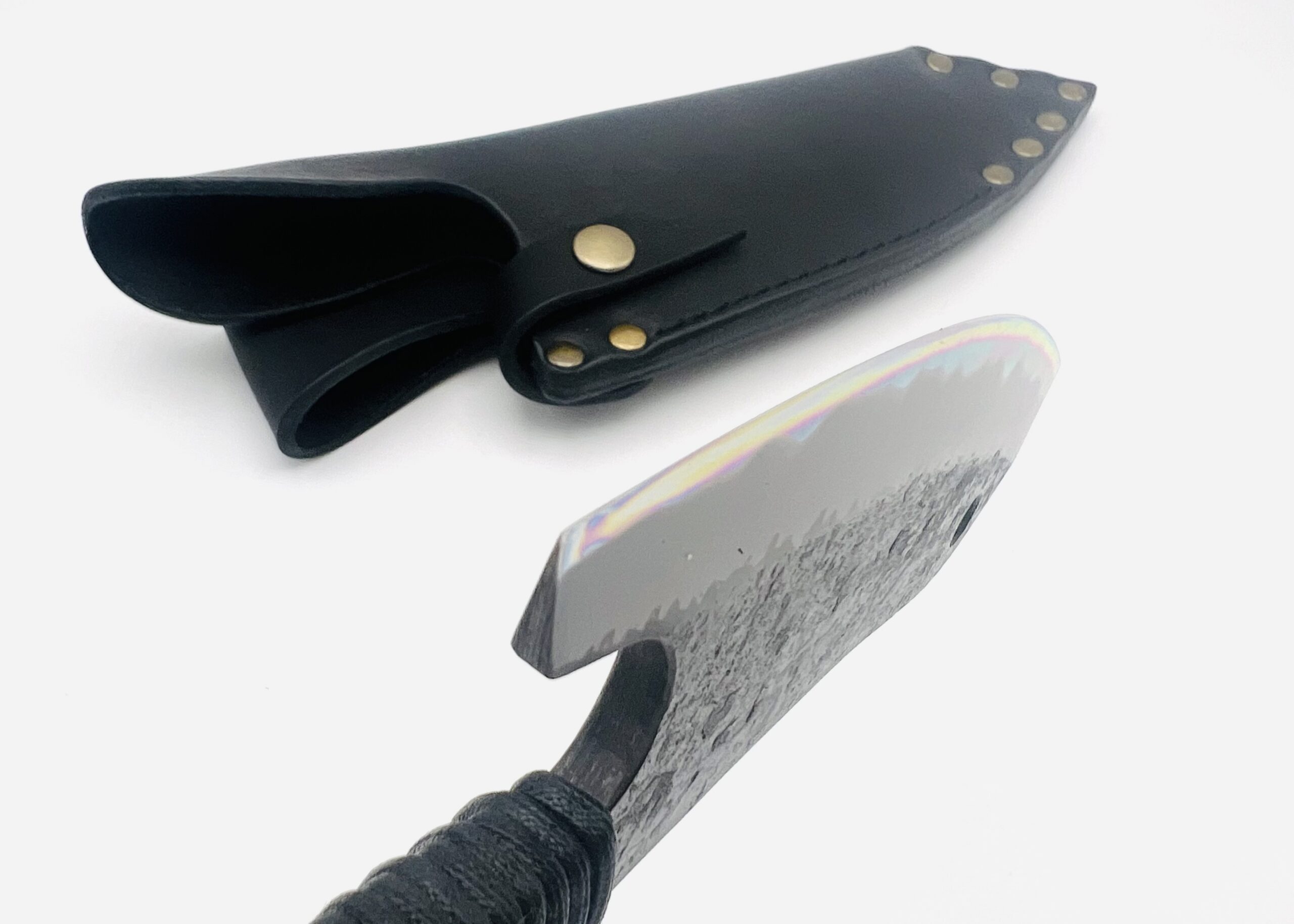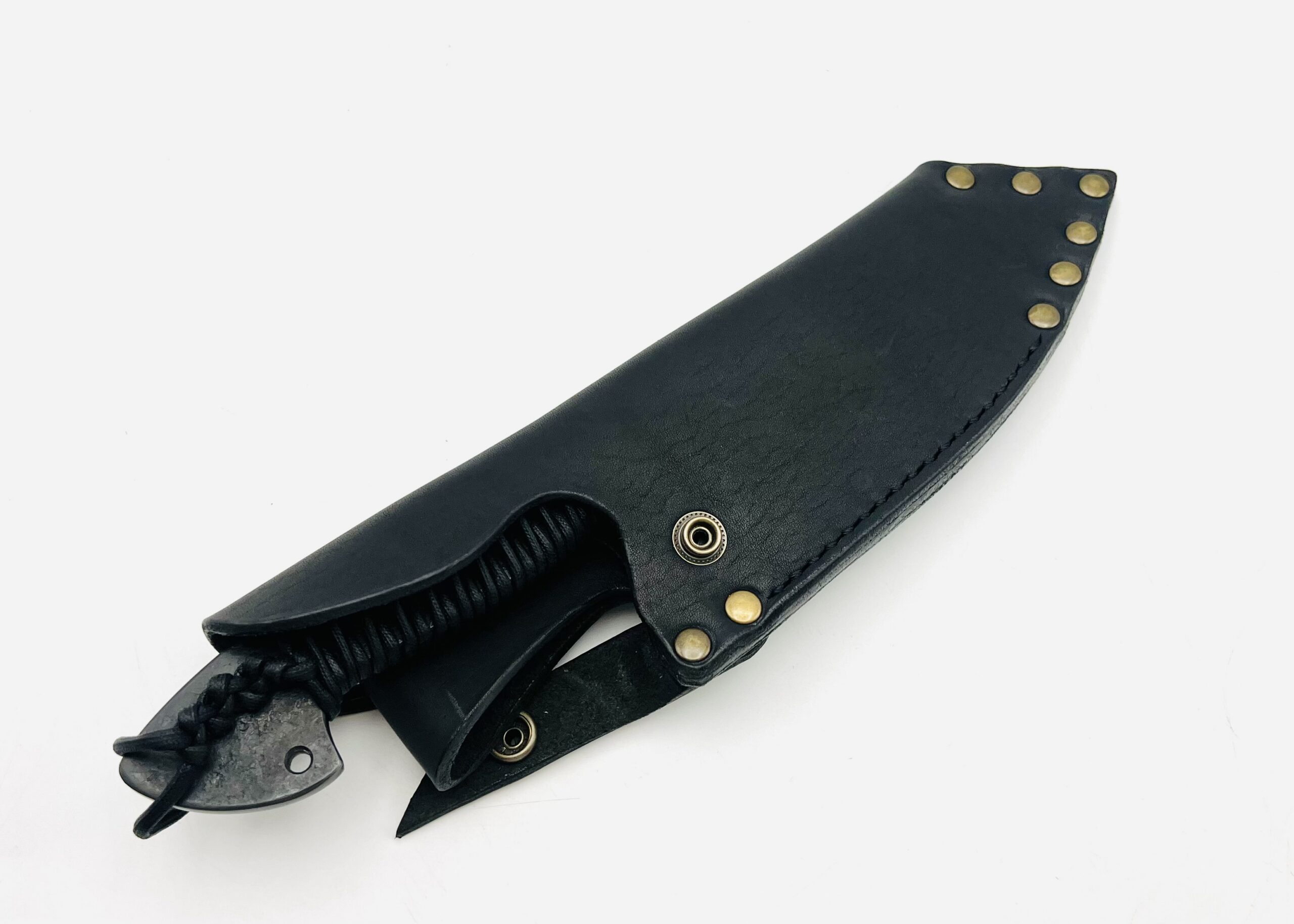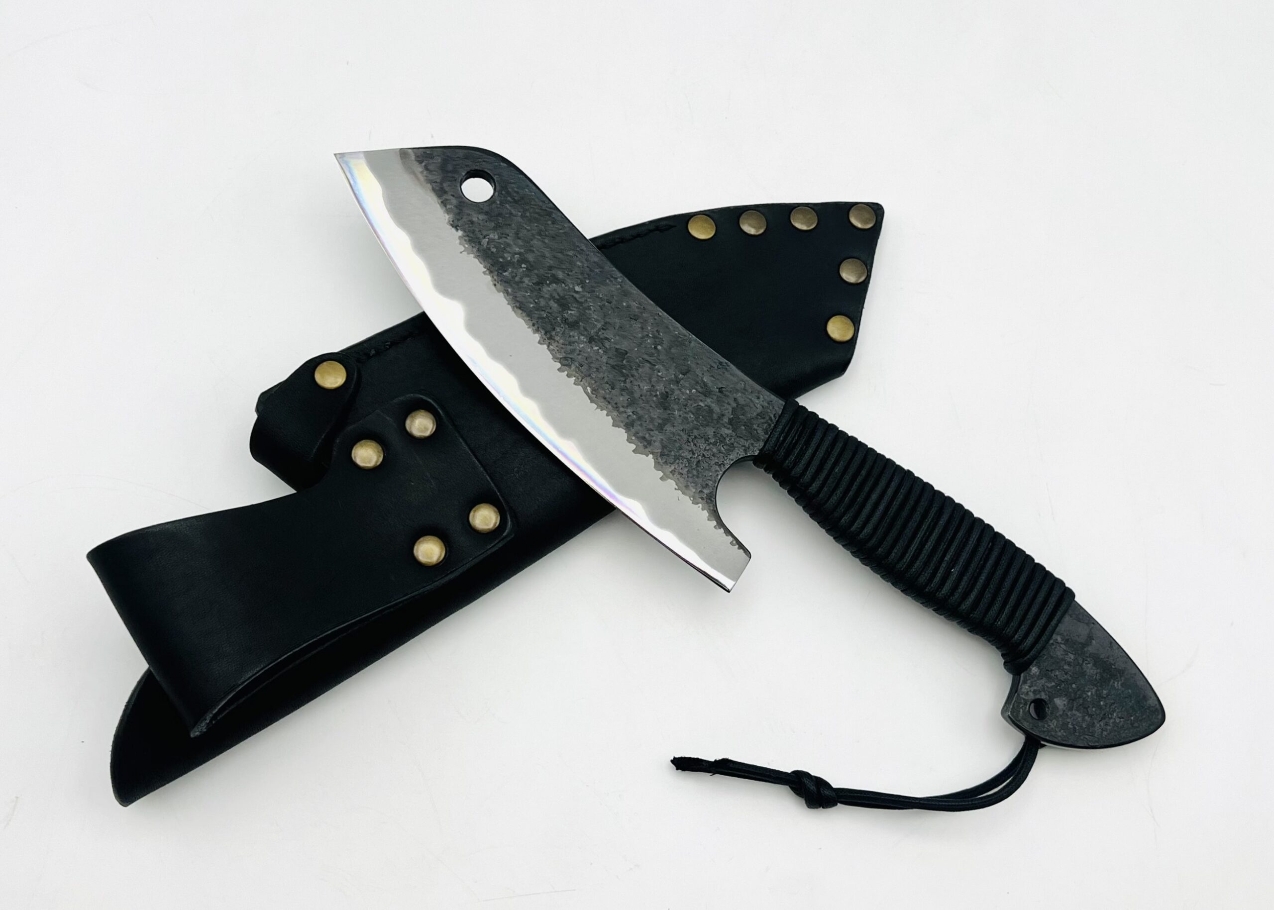 | 商品名 | 鉄鋼 青紙二号 黒打ちブッチャーナイフ 紐巻 フルサック (BLK) |