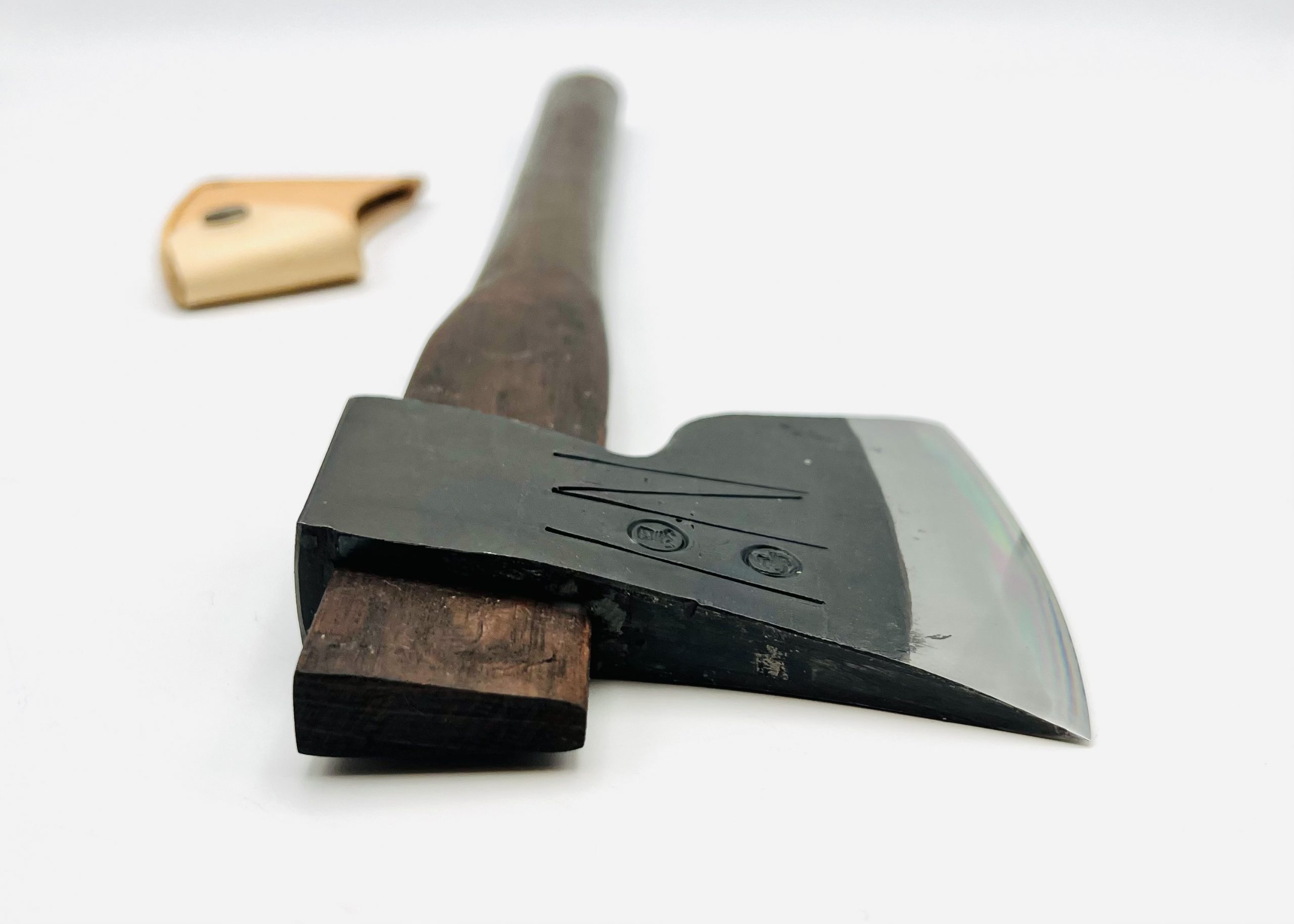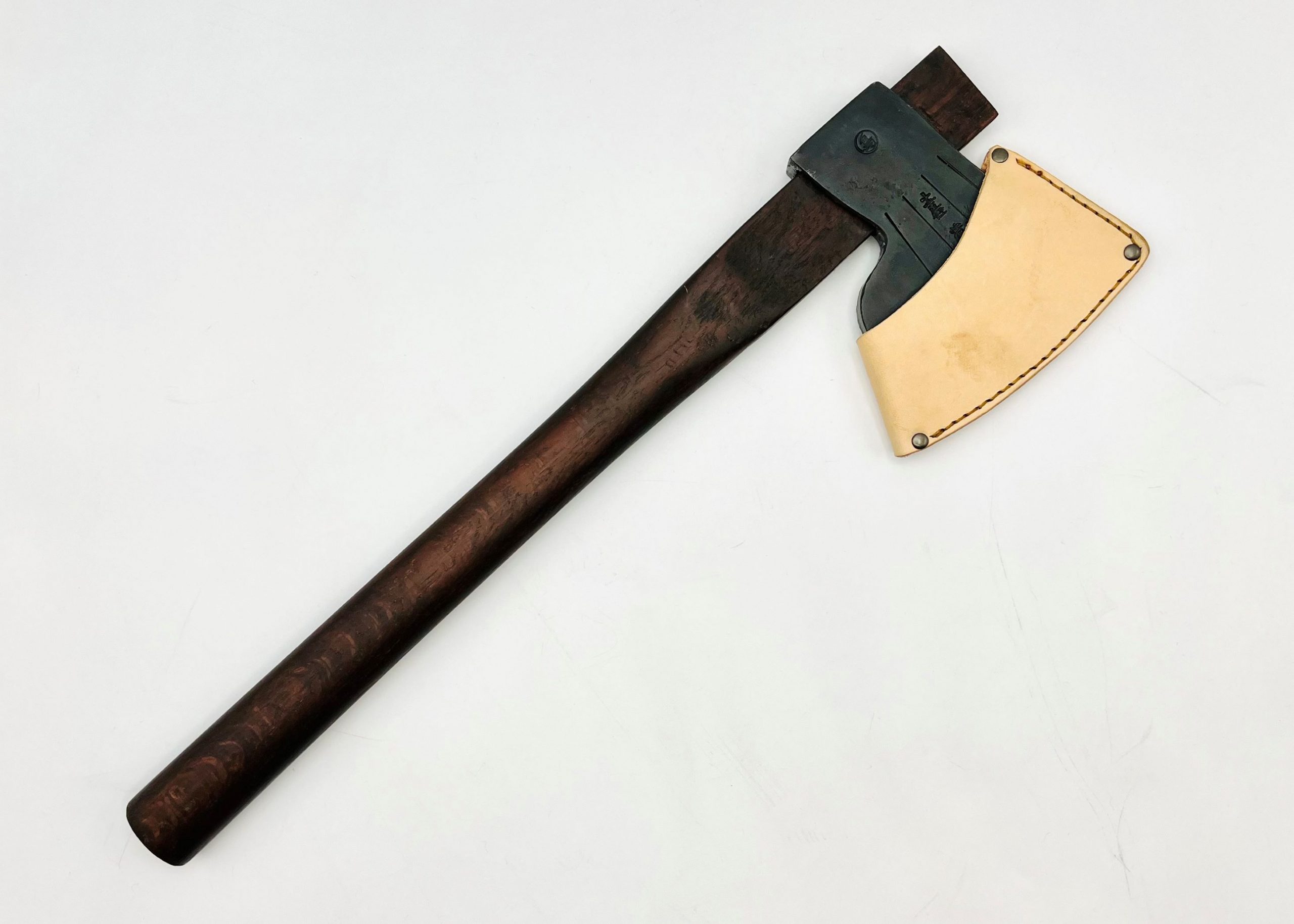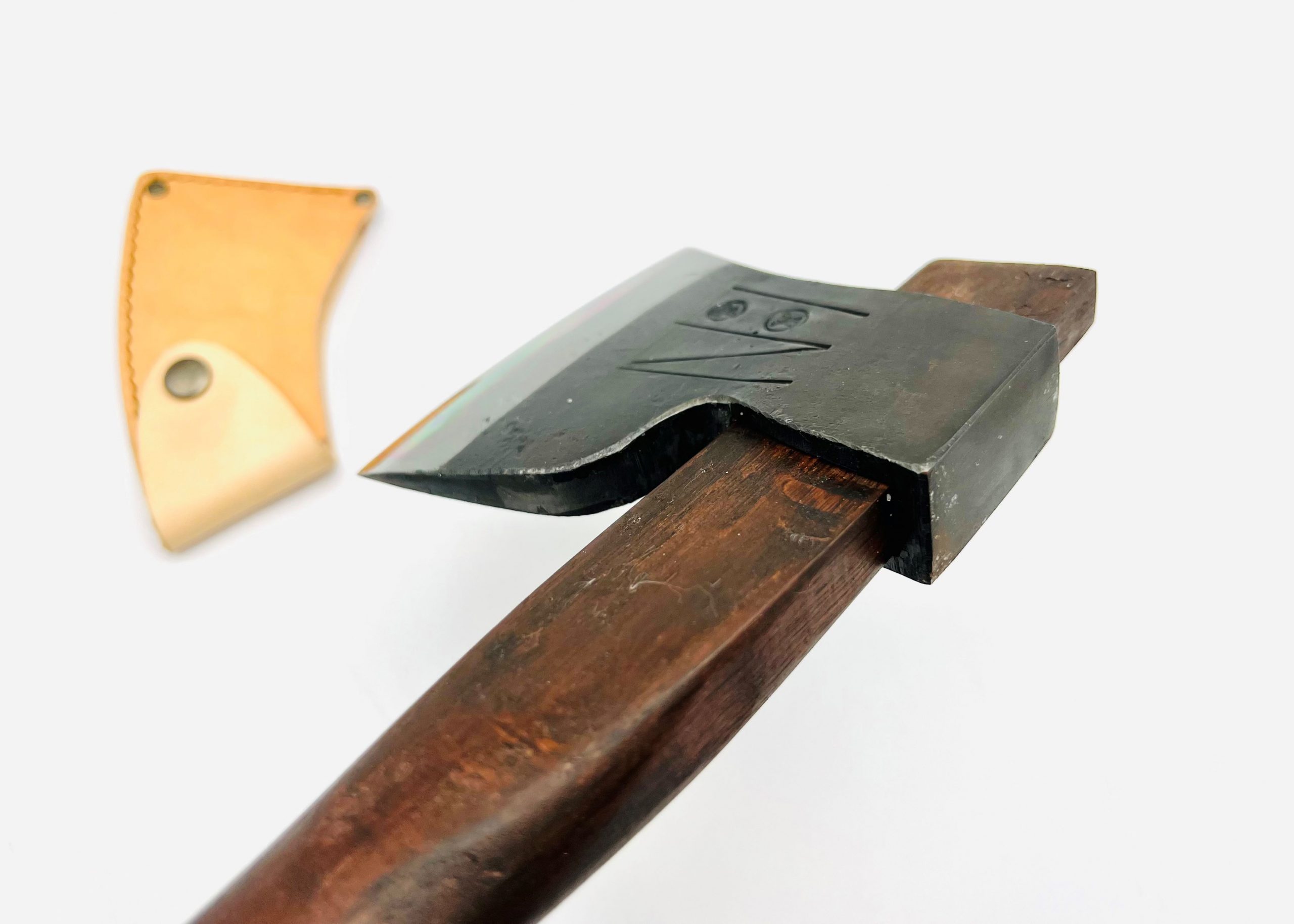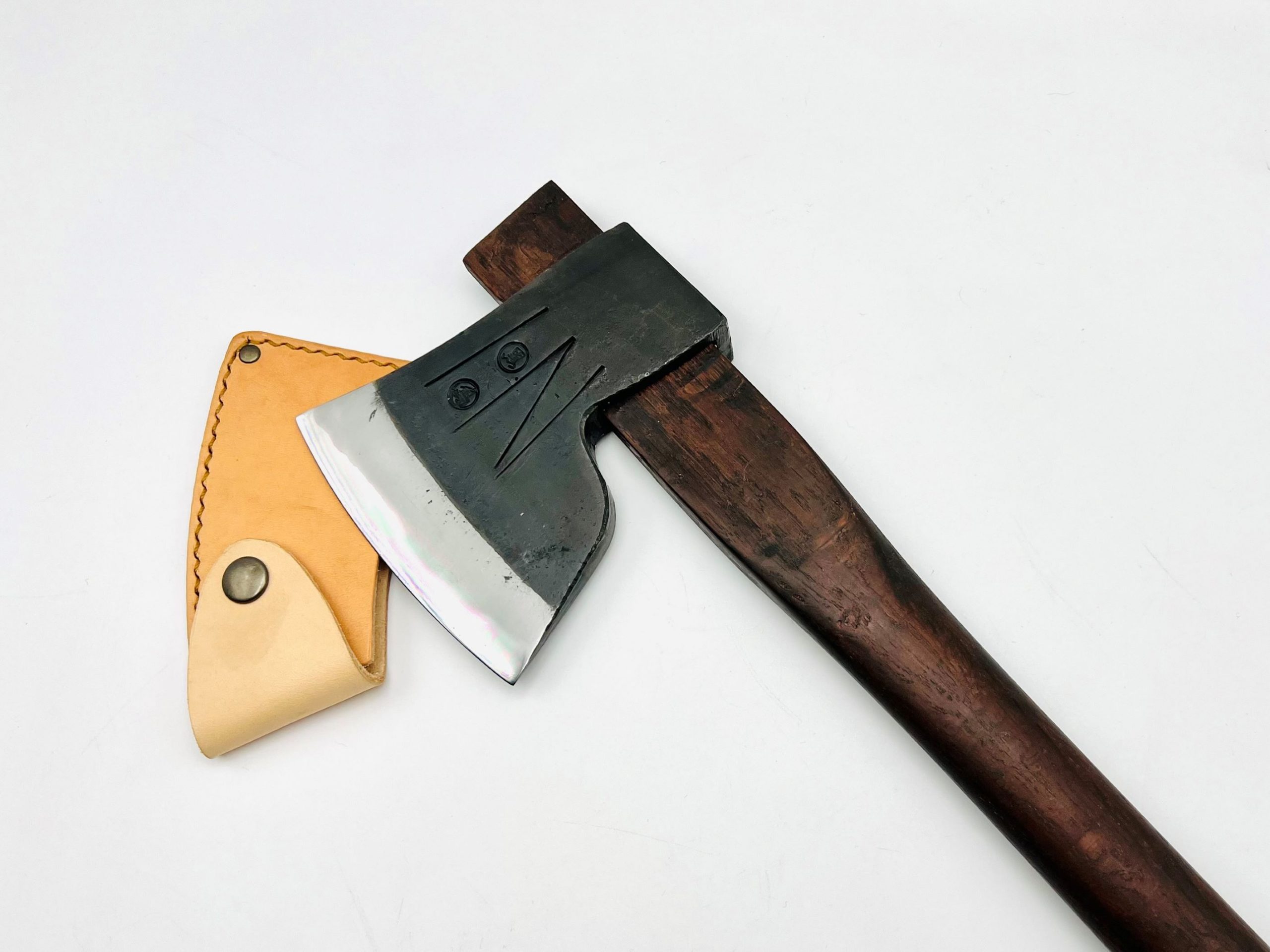 | 商品名 | 樫柄 鉄・鋼(青二)手斧 シュロ縄&革シース付 |