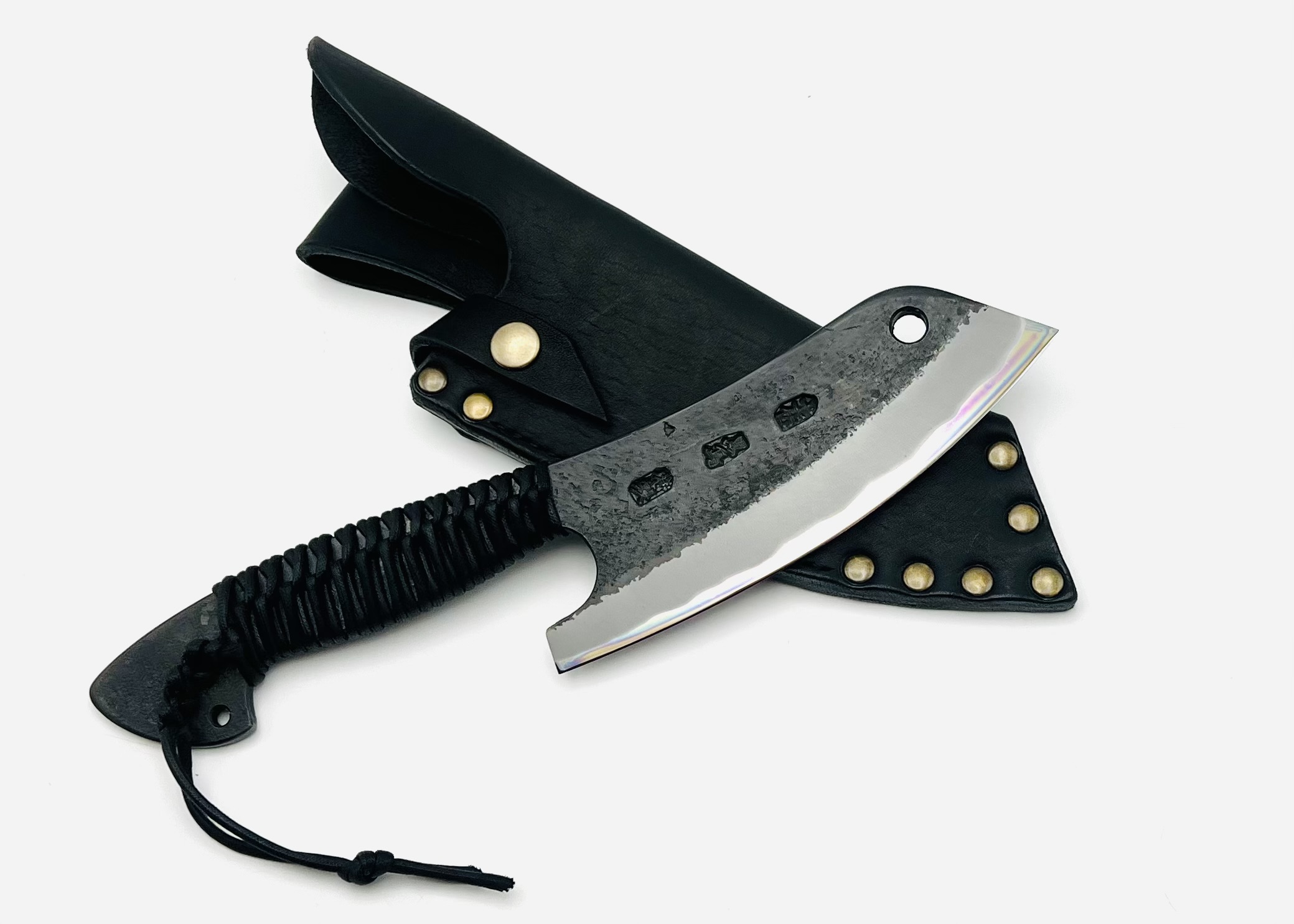 鉄鋼 青紙二号 黒打ちブッチャーナイフ 紐巻 フルサック (BLK)